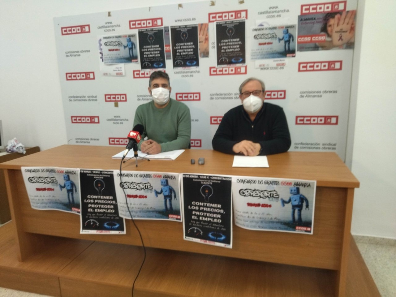 El responsable comarcal de CCOO en Almansa, Pedro González, junto a Carlos Navalón, miembro de la comisión negociadora del convenio del calzado y en representación de CCOO en Almansa, han comparecido en una rueda de prensa en la sede del sindicato en Almansa, para hablar sobre las negociaciones del convenio colectivo del calzado. Han advertido que de no alcanzar un acuerdo habrá movilizaciones para reclamar un convenio colectivo “justo”.