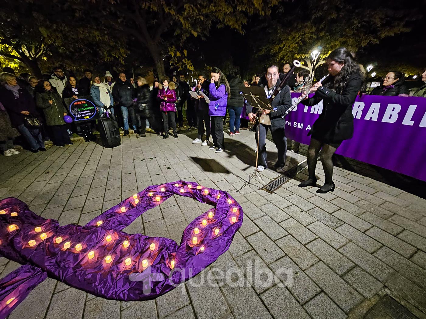 Un gran lazo morado, con velas, presidía el acto, en el que ha sonado la música y donde se ha gritado «se acabó» y se ha mostrado el rechazo de la sociedad albaceteña a la violencia machista.