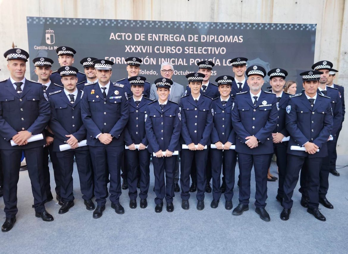 El concejal de Seguridad Alberto Reina, acompañado de los inspectores jefes de la Policía Local Mario Rubio y Luciano Rosillo, han asistido en Toledo a la clausura y acto de graduación del XXVII Curso de Formación Inicial para policías locales de Castilla Mancha, en el que han participado 15 nuevos agentes del cuerpo en Albacete.
