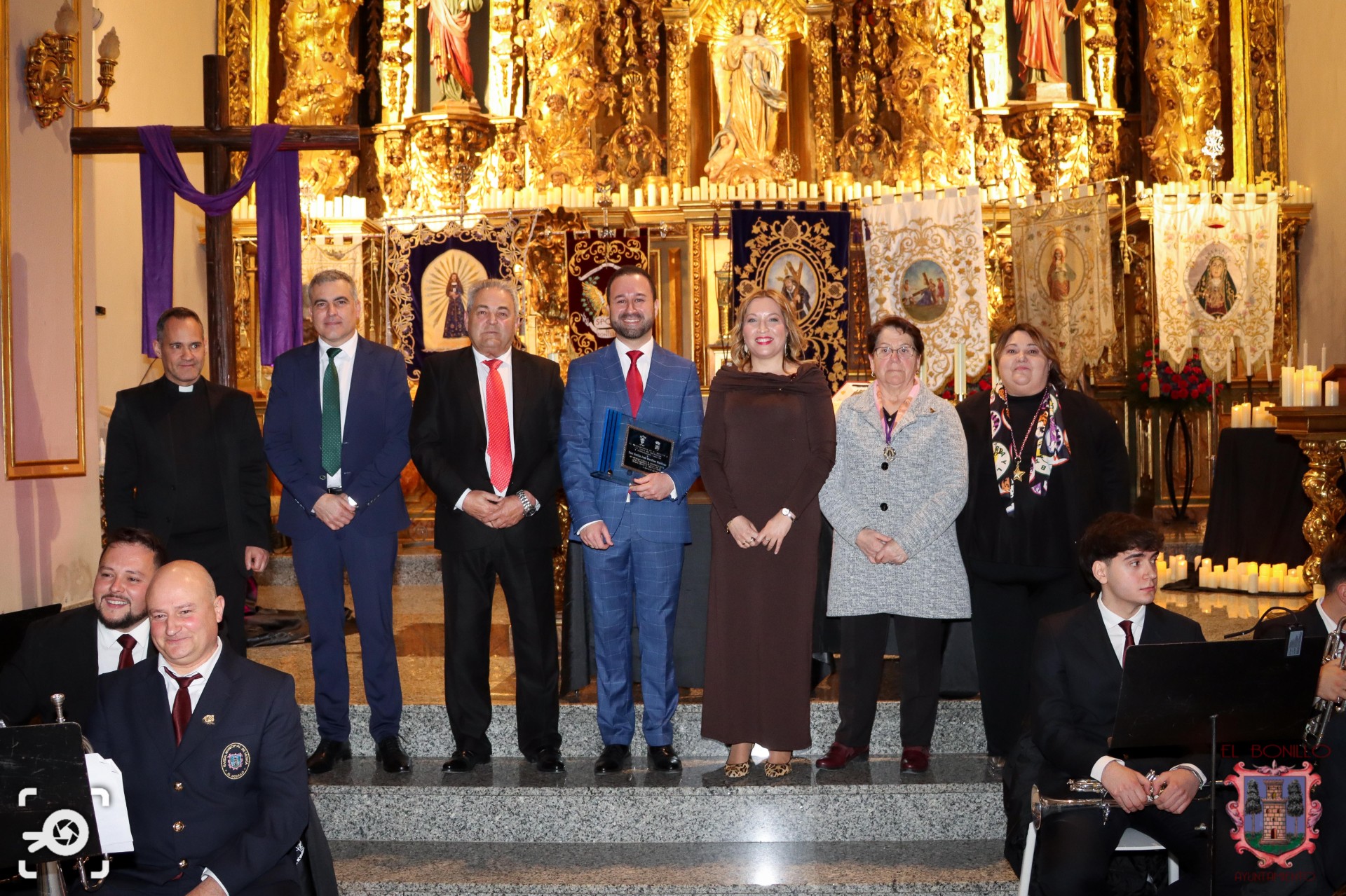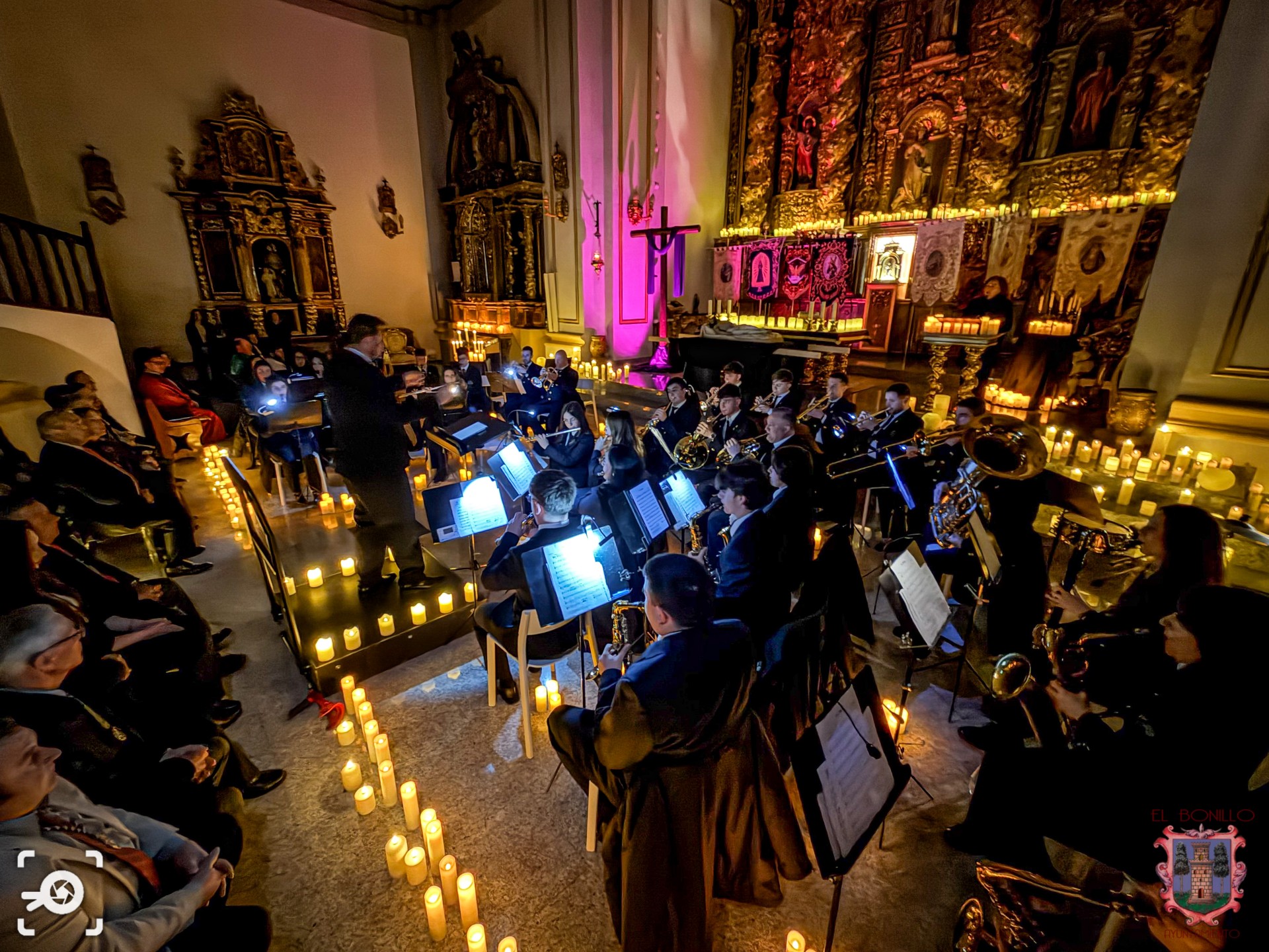 Uno de los momentos más especiales de la noche fue el estreno de una pieza musical “Lágrimas del Redentor”, compuesta por el propio pregonero para la ocasión, interpretada por él mismo junto a la Banda Municipal de Música de El Bonillo, dirigida por Marcos José Atencia.