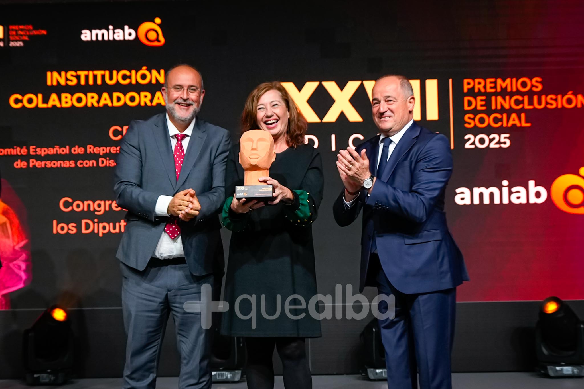 Armengol, que agradecía a Emilio Sáez -presidente de amiab y diputado nacional- «la apuesta por la inclusión social» recibía el premio por la modificación del Artículo 49 de la Constitución Española, que simboliza el avance hacia una sociedad que respeta la dignidad, la igualdad y los derechos de todas las personas, dejando atrás el lenguaje peyorativo para reconocer de forma clara y respetuosa a las personas con discapacidad como titulares plenos de derechos.