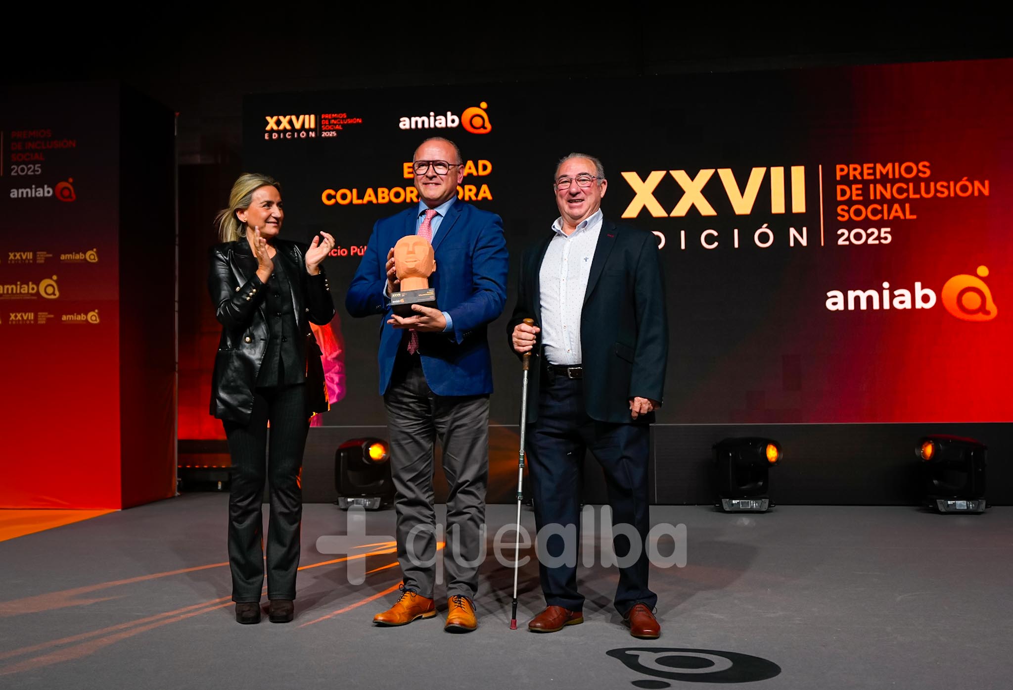 Y unas palabras especiales “para Emilio Sáez, presidente de AMIAB. Emilio representa como pocos ese compromiso con el servicio público y con la integración de las personas con discapacidad desde todos los ámbitos de responsabilidad que ha asumido”.