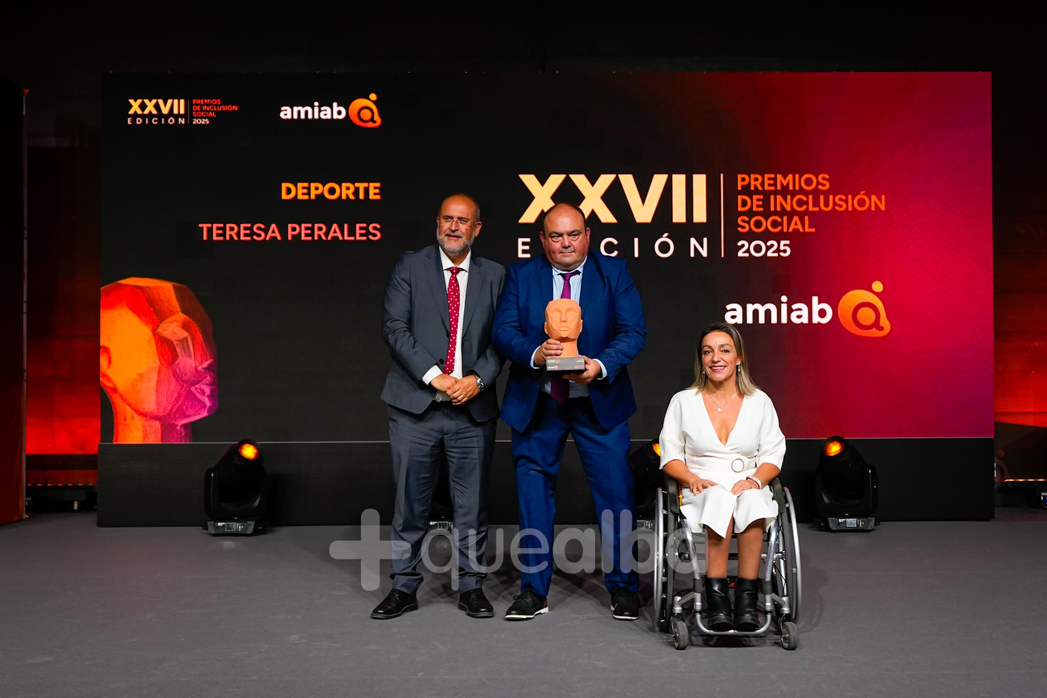 En la categoría de Deportes, AMIAB ha galardonado a Teresa Perales, nadadora de Alto Nivel, con 27 medallas paralímpicas y con una trayectoria que la convierte en una de las deportistas más laureadas del mundo. A lo largo de su trayectoria, Teresa ha roto récords en la piscina y barreras en la sociedad. No ha podido estar presente en la gala, por una indisposición de última hora, pero ha agradecido el reconocimiento con un emotivo video.