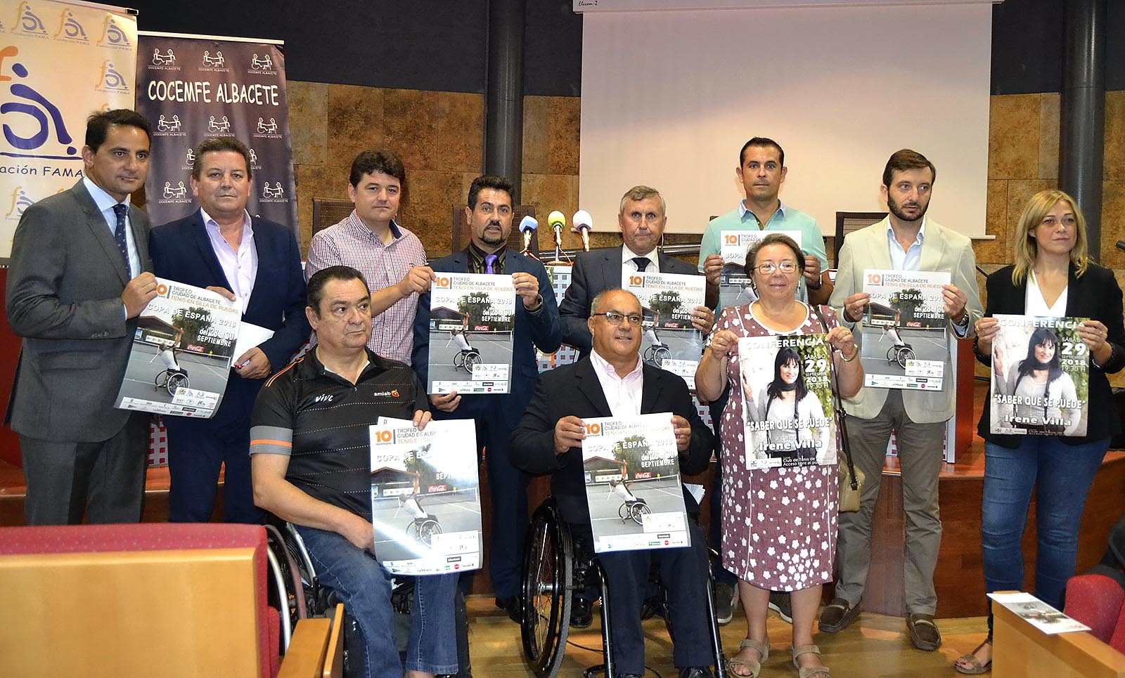 En la mañana de hoy se presentado en la sede de Cocemfe Albacete la décima edición del Trofeo Ciudad de Albacete de Tenis en Silla de Ruedas, prueba puntuable para la Copa de España de esta disciplina deportiva. El acto ha contado con la presencia de Francisco Navarro, Concejal de Deportes del Ayuntamiento de Albacete, Carmen Picazo, Concejal de Ciudadanos, Francisco Martínez, Diputado Provincial, Luis Polo, Jefe Servicio Deportes de la Junta en Albacete, Marcelino Escobar, Presidente Cocemfe Albacete, Jose Carlos Jurado, Director Deportivo de AMIAB, el Presidente del Club Tenis Albacete, Francisco López y el director del torneo, Julián García, además de representantes de patrocinadores. El evento tendrá lugar del 28 al 30 de septiembre en el Club Tenis Albacete. La final absoluta será el domingo a las 11 h. Se disputarán pruebas de individuales, dobles y consolación. Hay premios para los finalistas en individuales y dobles, además de los correspondientes puntos para la Copa de España.