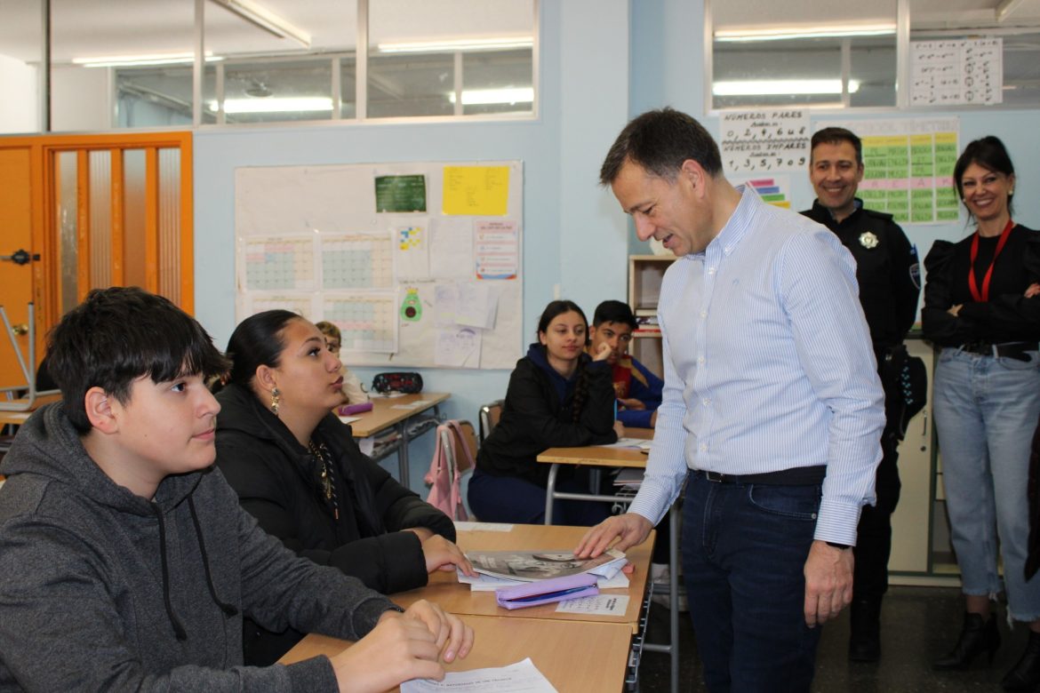 Aprovechando su visita al Colegio ‘La Paz’, el alcalde ha mantenido un encuentro con los delegados de clase para tomar buena nota de sus peticiones y sugerencias, acompañado por miembros del equipo directivo.