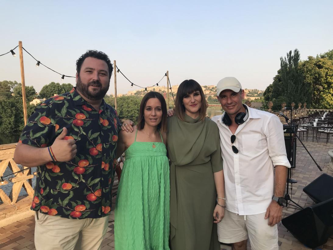 La directora general de Turismo, Comercio y Artesanía, Ana Isabel Fernández, junto con el responsable de la Castilla-La Mancha Film Commission, Mike Villanueva, acompañaron a la compañía publicitaria Harold y a la cantante Rozalén durante el rodaje de esta campaña que se realizó en el Cigarral del Ángel de Toledo, como uno de los principales recursos turísticos de la región, desde donde se puede contemplar una de las panorámicas más potentes de la ciudad Patrimonio de la Humanidad, así como en diferentes espacios. Ambos tuvieron la oportunidad de saludar al director responsable de la producción, David Sousa, y al resto del equipo.