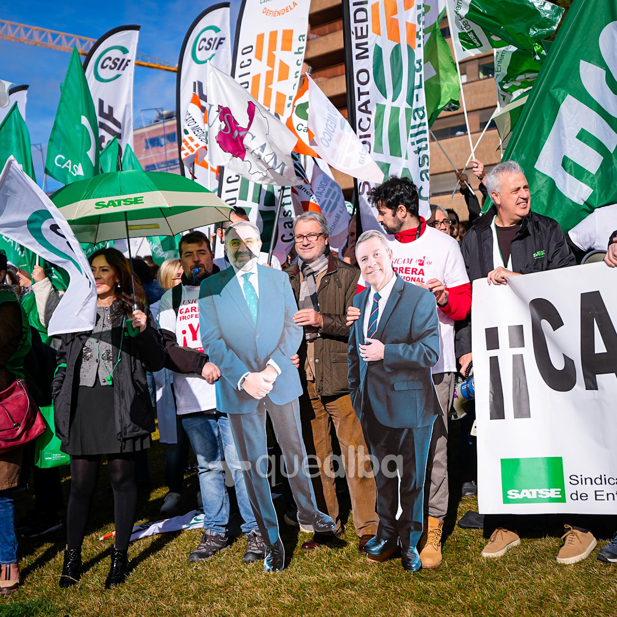 En una protesta donde no han faltado Page y su consejero de Sanidad, Jesús Fernández Sanz, en ‘cartón pluma’, los responsables sindicales han recordado que Castilla-La Mancha es la única comunidad que sigue sin recuperar la carrera profesional y han lamentado que Page lleva ya casi tres legislaturas completas sin cumplir esta promesa de su programa electoral.