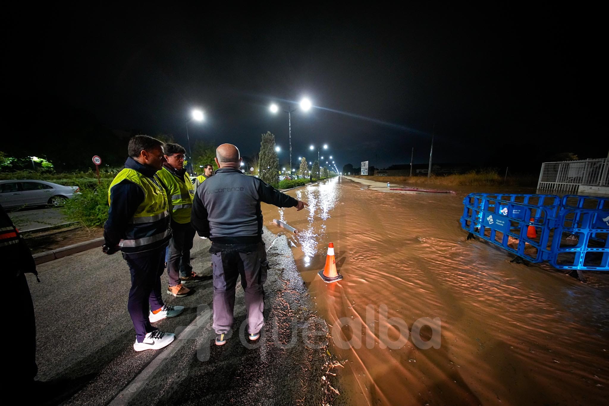 La carretera al Parador de Albacete y la entrada a la ciudad por la Carretera de Valencia permanecen cortadas, desde alrededor de las nueve de la noche de este lunes 13 de octubre, como consecuencia de las inundaciones que se están produciendo, fruto de la fuerte tormenta estática que descargaba sobre la vecina localidad de Chinchilla de Montearagón.