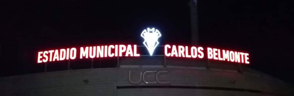Estadio Municipal Carlos Belmonte se podrá ver completo desde hoy en la puerta 6 del estadio del Alba. Por fin, el estadio tiene nombre.