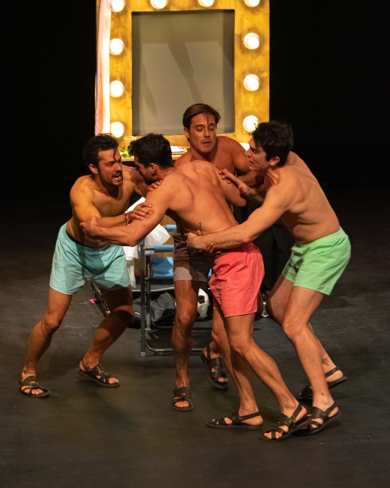 Un camerino. Cuatro actores. Cuatro espejos. A partir de un suceso inesperado, los protagonistas viven un torbellino de emociones, recuerdos y confesiones que desembocan en un divertido caos que invita a conocer sus miedos y sus ilusiones.