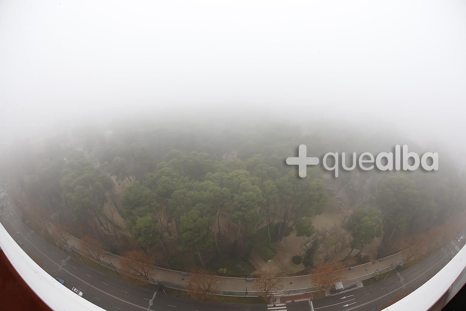 La niebla que está mañana ha durado horas y está noche ha llegado muy pronto a Albacete ‘oculta’ algunos de los lugares más emblemáticos como el Parque Abelardo Sánchez.