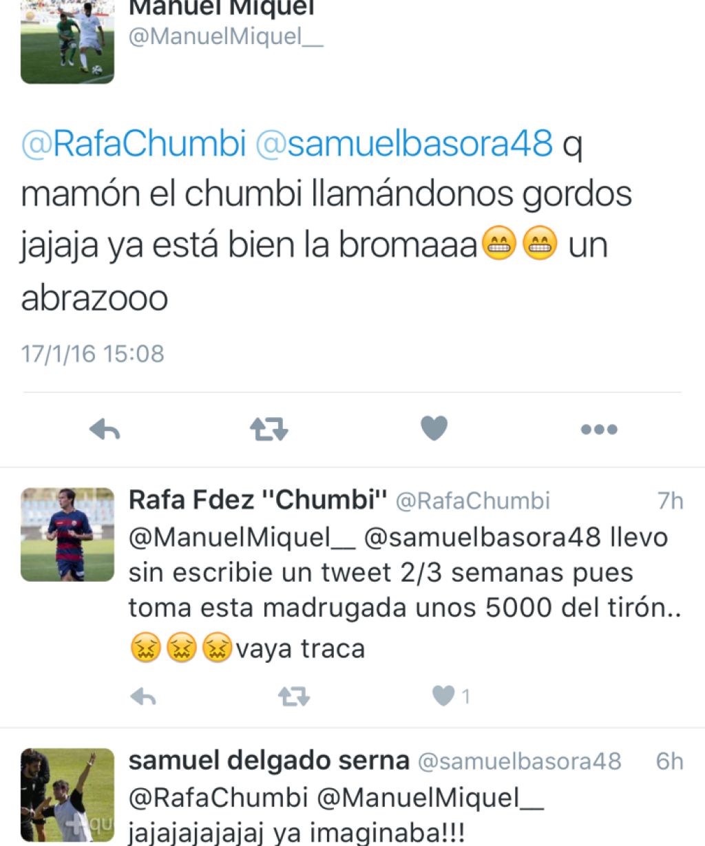 Chumbi, nada más darse cuenta de lo que había hecho su cuenta, ha pedido disculpas. Y con humor, sus excompañeros Miquel y Samu le han escrito algunos comentarios sobre el tema.