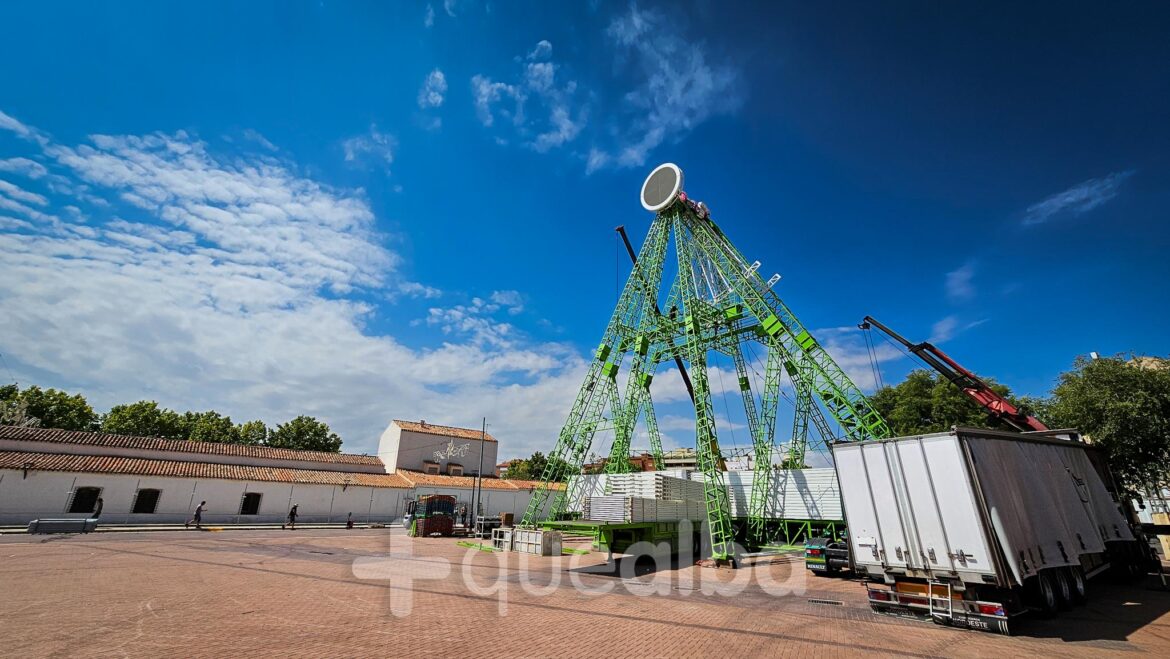 Una señal inequívoca de que la Feria de Albacete, declarada de Interés Turístico Internacional, está muy cerca de abrir es que la noria ha comenzado ya a instalares en los alrededores del Recinto Ferial.