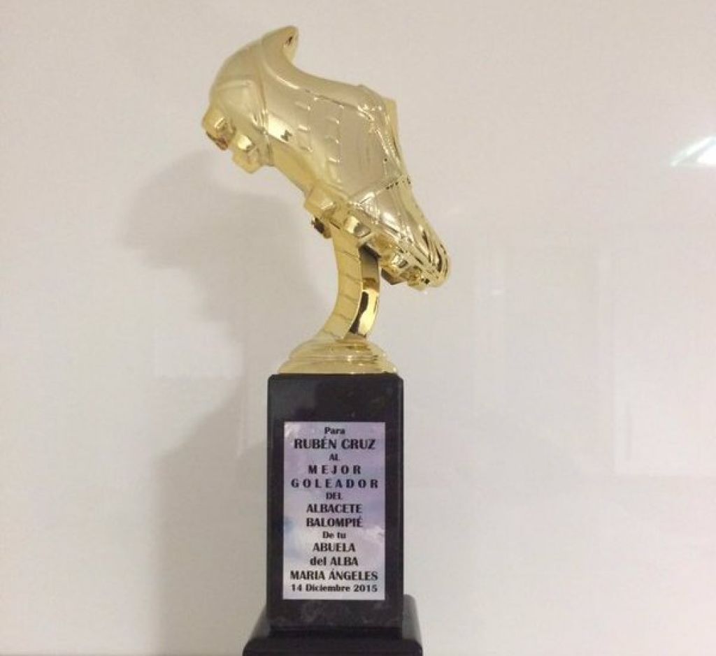 Rubén Cruz ya tiene su Bota de Oro y, como él mismo ha mostrado en su cuenta de Twitter, tan preciado galardón, con trofeo dorado incluido, se lo ha dado la abuela del Alba, María Ángeles.