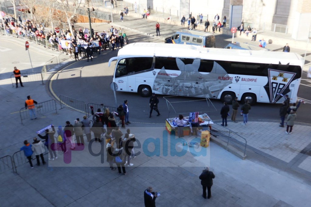 El Albacete Balompié ya está en La Romareda, donde cientos de aficionados le animarán esta tarde y donde ha vuelto a sentir el calor de la afición a su llegada al estadio.