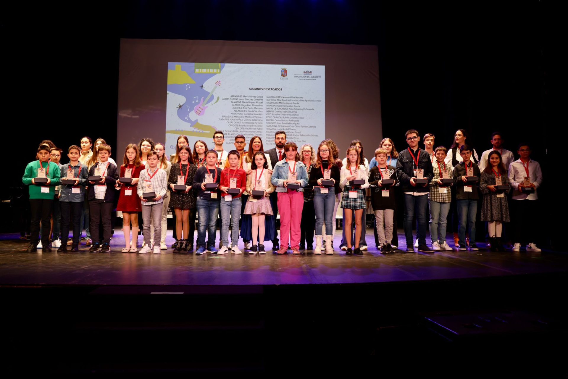 También a Martín López García de Molinicos; Pablo Hernández García de Munera; Aroa Rabadán Peñaranda de Navas de Jorquera; Daniela Ibáñez Gómez de Nerpio; Rubén García Escobar de Pozo Cañada; Carlos Morata Rodríguez de Riópar; Izan Botella Rodríguez de Socovos; Olivia Paños Cutanda de Tarazona de la Mancha; Lucia Reolid Valero de Tobarra; Elena Gómez Cantó de Valdeganga; Carlos Sahuquillo Gómez de Villalgordo del Júcar; Laura Motilla Pérez de Villamalea; Tomás de La Ossa Díaz de Villarrobledo; Carolina Martínez Trullench de Fuente-Álamo y Ruth Juárez Gallego de Yeste.