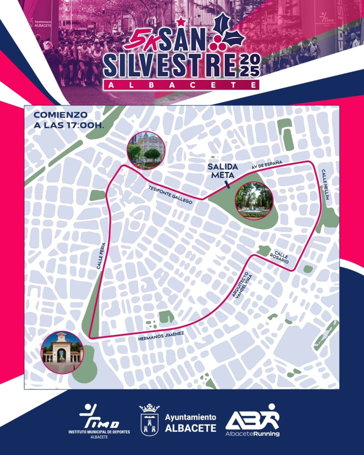 La San Silvestre 2025 de Albacete, a celebrar en la tarde del 31 de diciembre, repite el recorrido oficial con un circuito totalmente homologado por la RFEA de 5km, como recoge el IMD en sus redes sociales.