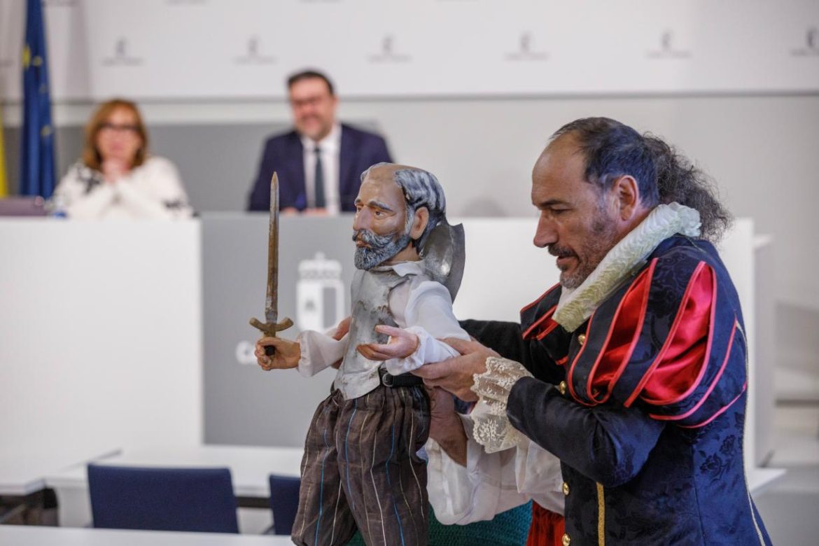 En la misma, ha estado acompañado de la viceconsejera de Cultura y Deportes, Carmen Teresa Olmedo; y de Raúl Esquinas y Adrián Torrero, de la compañía teatral conquense ‘La Máquina Real’, presentes en la programación y quienes han realizado una interpretación al término de la conferencia.