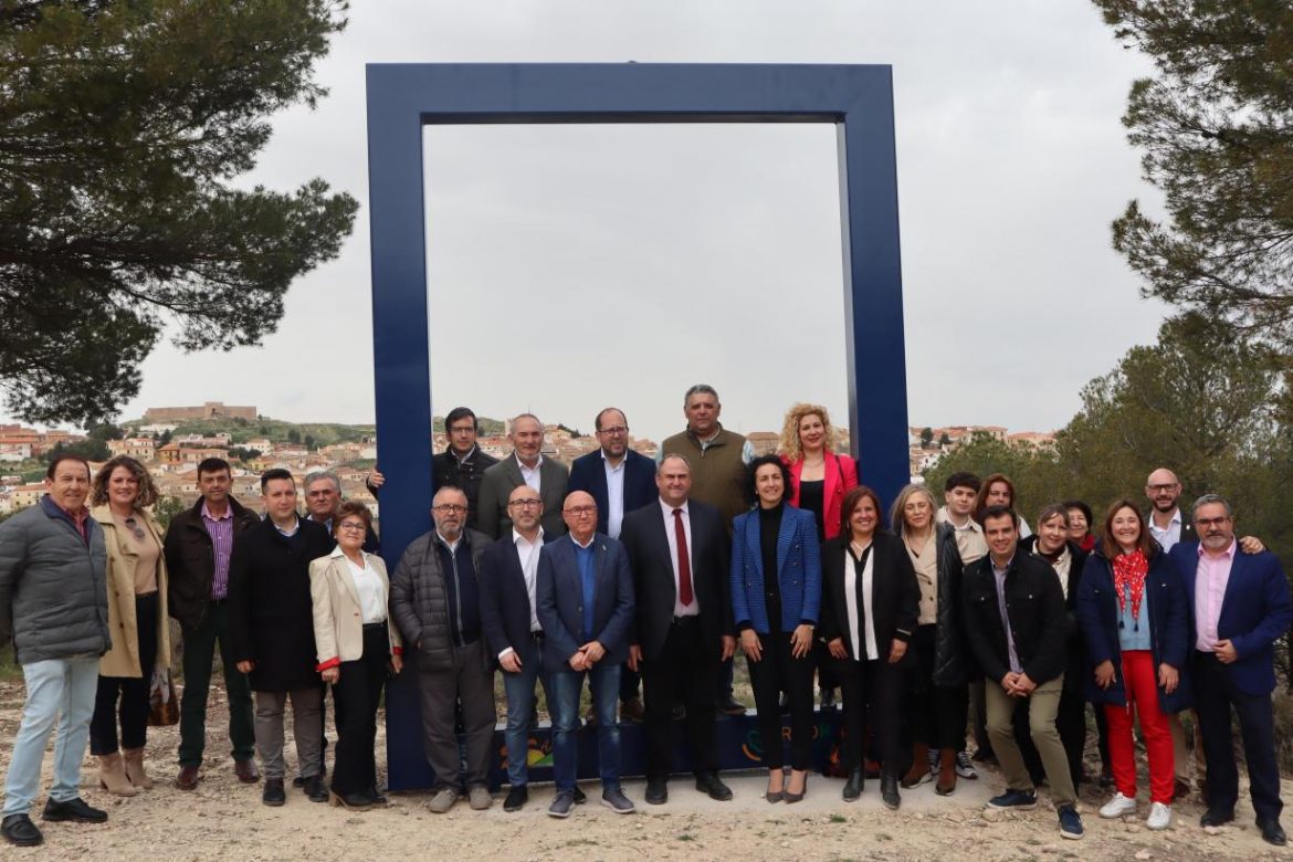 Posteriormente, en Chinchilla de Montearagón, y también junto a su alcalde, Francisco Morote, y otros alcaldes de la comarca, ha inaugurado el Marco correspondiente al ODS 16 (Paz, Justicia e Instituciones Sólidas).
