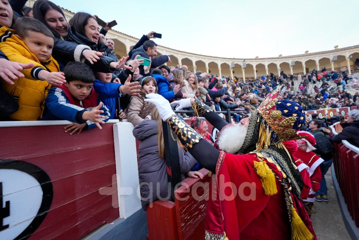Los Reyes Magos de Oriente llegaban puntuales a la cita con la Plaza de Toros de Albacete, a las cinco de la tarde, donde les esperaban miles de personas.