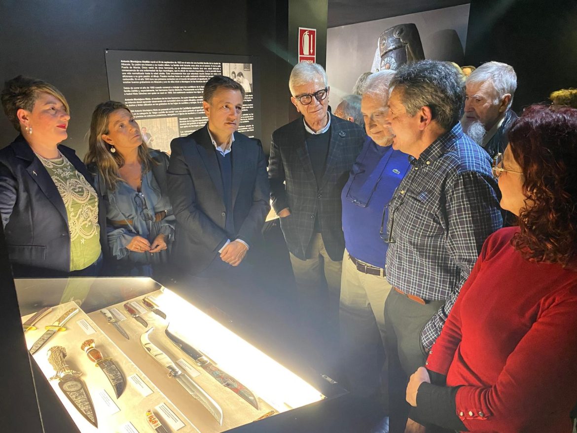 Acompañado por la concejal responsable del área, Lucrecia Rodríguez de Vera, otros miembros de la Corporación Municipal, la presidenta de Aprecu, Pilar Jiménez, y representantes del sector cuchillero, como Amós Núñez, el alcalde visitado las vitrinas que hoy se inauguran y que recogen 80 años de trabajo de la familia Montejano, destacando los grabados en las hojas y los mangos de las piezas.