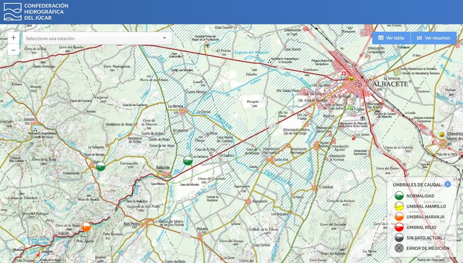 El río Jardín, que va al Canal de María Cristina -que inundó garajes y calles en Albacete por el subsuelo- está en nivel rojo de caudal, como recoge la web de la Confederación Hidrográfica del Júcar (CHJ).