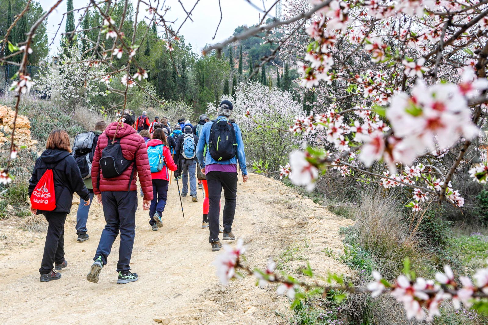 Entre distintos cultivos, principalmente almendros -de gran belleza ya en flor-, junto a algún olivo, continuarían la marcha ya de regreso al municipio, así, y tras cruzar la carretera de Elche de la Sierra, subirían por la Quebrada, hasta llegar a la Cantarería.