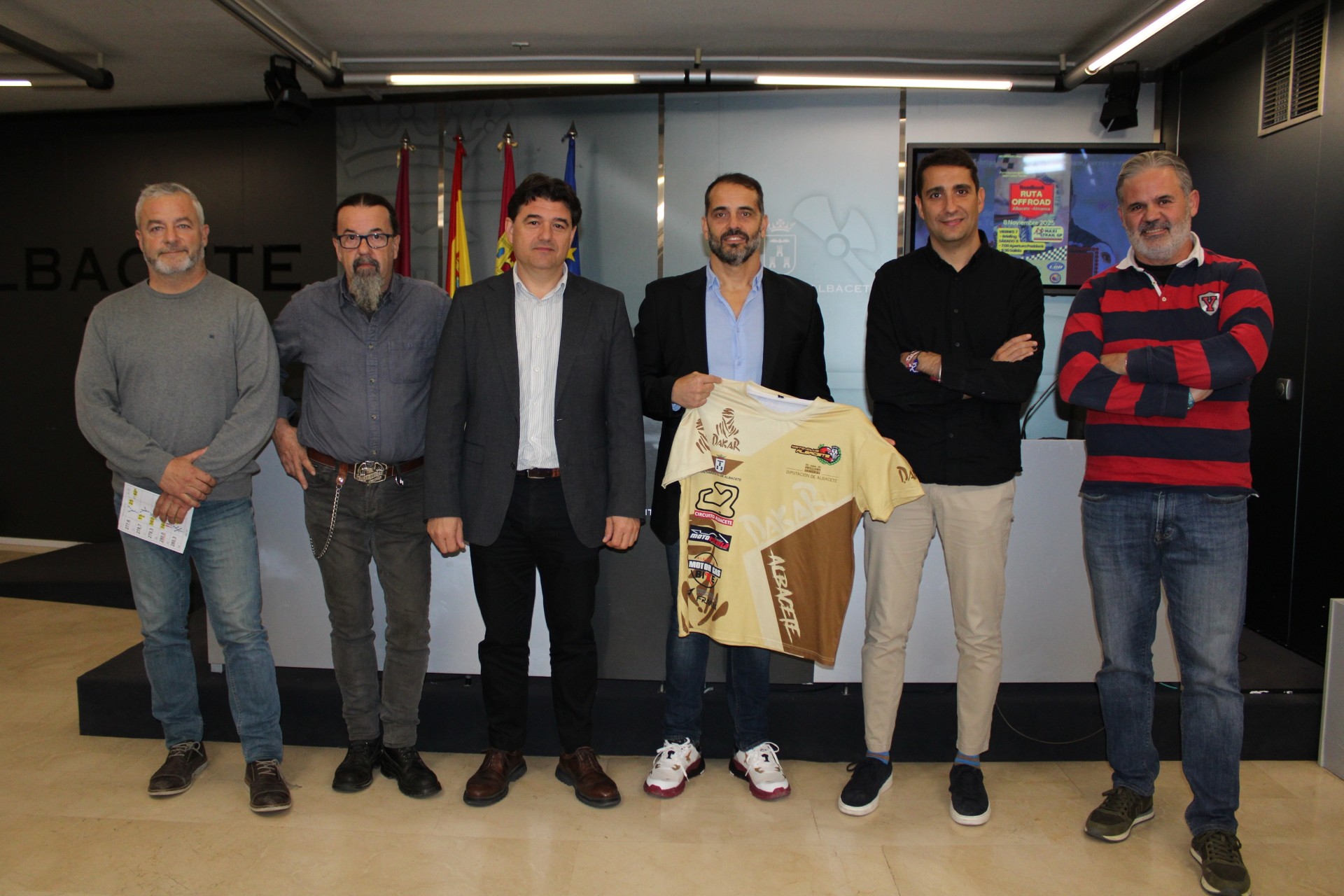 El presidente del Consorcio del Circuito de Velocidad y primer teniente de Alcalde, Francisco Navarro, ha presentado la Ruta Off Road Albacete-Almansa que tendrá lugar este sábado, día 8, junto al vicepresidente de esta entidad y diputado provincial de Deportes, Daniel Sancha, el piloto albaceteño Juan Carlos Torres, en representación del Centro de Formación Maxi Trail, Gerardo Paños, organizador del evento junto a Carlos Ruiz, y Aníbal Alegre por parte del Moto-Club Albacete.