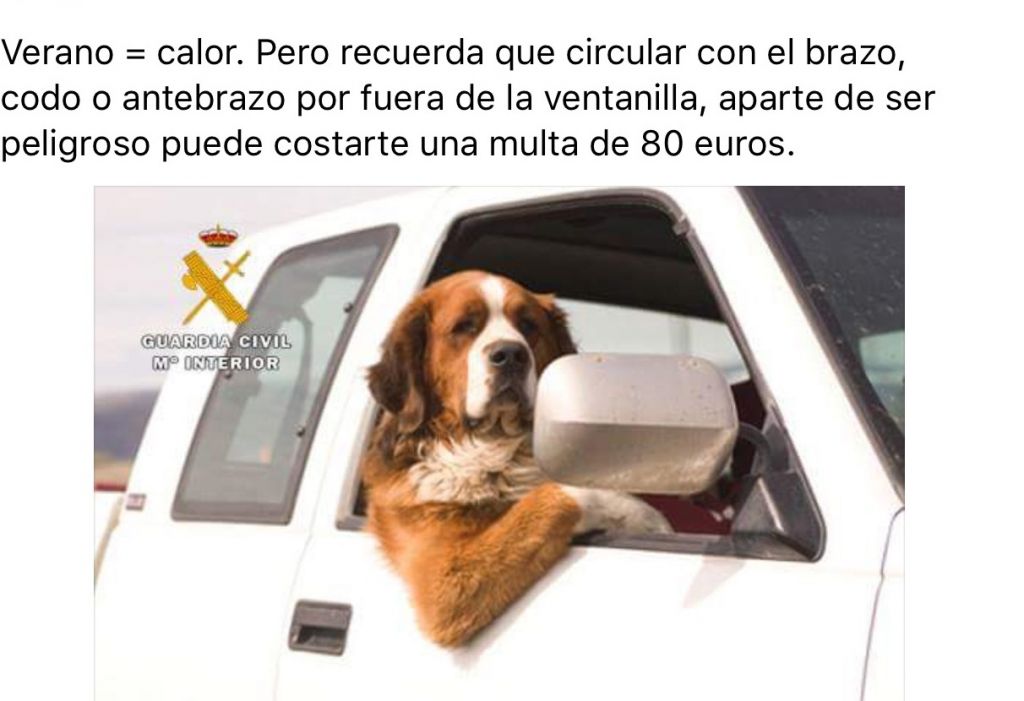 Sacar el codo o el brazo por la ventanilla mientras conduces puede acarrearte una sanción de 80 euros. Así lo advierte la Guardia Civil de Albacete en su cuenta de Facebook.