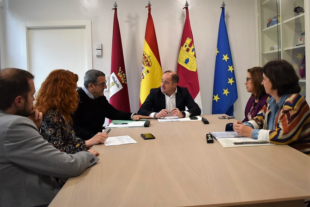 Sáez Cruz se ha reunido con la presidenta del Cermi CLM, Cristina Gómez Palomo; el técnico jurídico de la entidad, Marcelina de la Vega Ávila, y el gerente, José Antonio Romero Manzanares, acompañados del concejal de Participación, Manu Martínez, y la concejala de Atención a las Personas, Juani García.