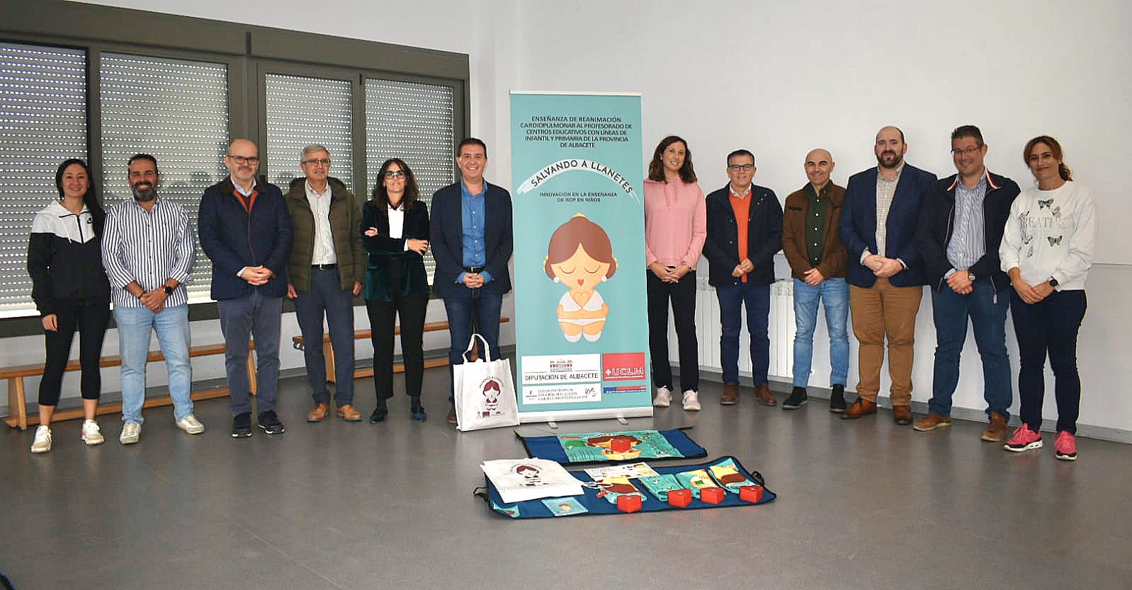 Son el primer paso de un engranaje crucial, ya que los y las docentes que superan esta formación (que requiere un 100% de asistencia) la transmiten, a su vez, al alumnado de los distintos centros educativos de la provincia con ‘Salvando a Llanetes’: un simulador innovador para la enseñanza de RCP a niñas y niños de entre 3 y 8 años. Consta de un corazón que se coloca sobre la figura Llanetes (una niña dibujada en un tapiz sobre el que está impreso el algoritmo de la RCP básica) y que, al ser comprimido perpendicularmente con la fuerza suficiente, emite un sonido a modo de feedback auditivo.