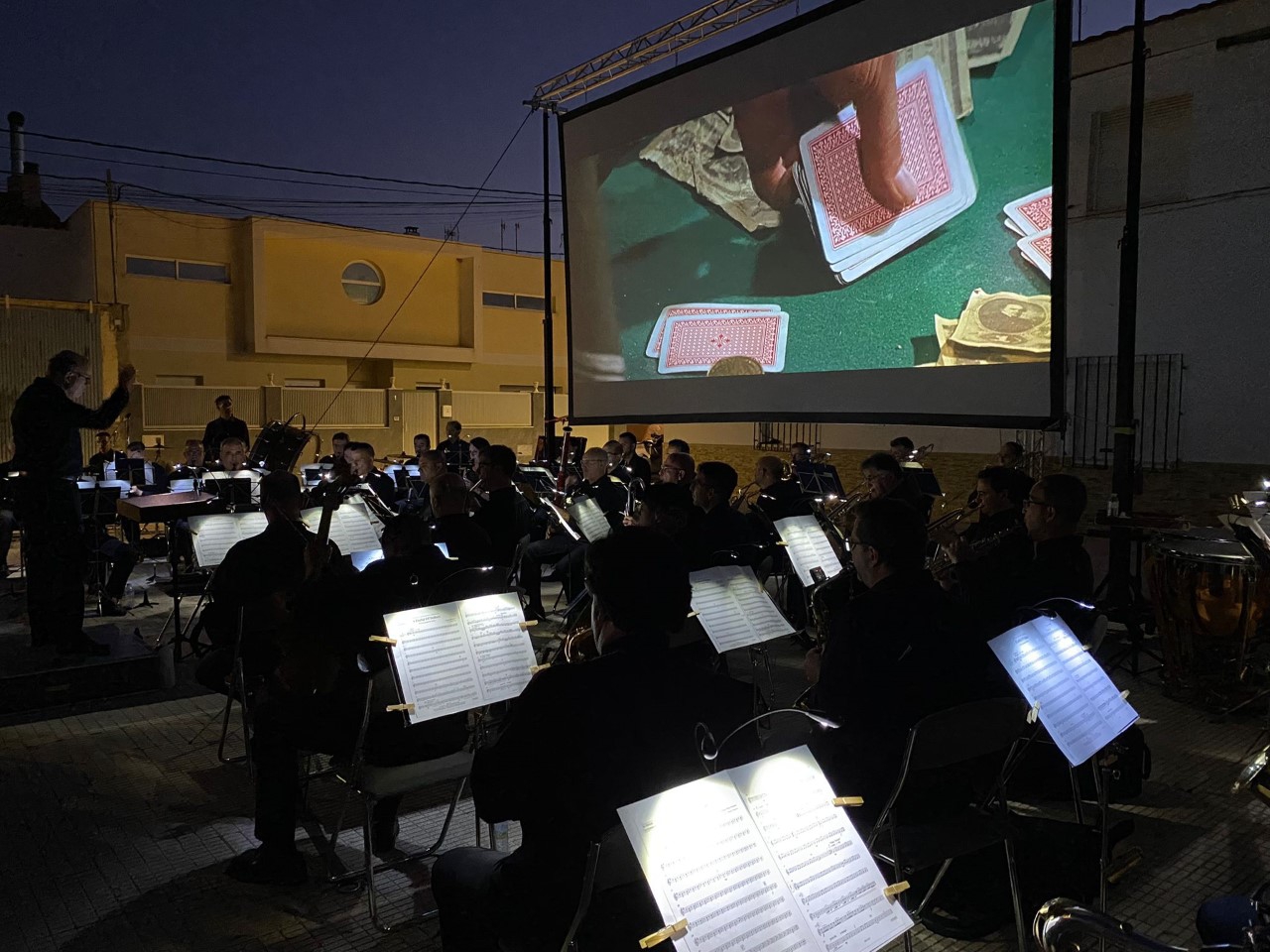 Santa Ana disfrutó anoche de música y cine, en una sesión maravillosa, protagonizada por las bandas sonoras compuestas por Ennio Morricone. Cerca de 200 vecinos y vecinas, hicieron un viaje musical por el séptimo arte de la mano de la Banda Sinfónica Municipal de Albacete, que ofreció este concierto en la pedanía gracias al programa Cine de Barrio impulsado por la Concejalía de Barrios y Pedanías, dentro del Verano Cultural, en colaboración con Abycine.