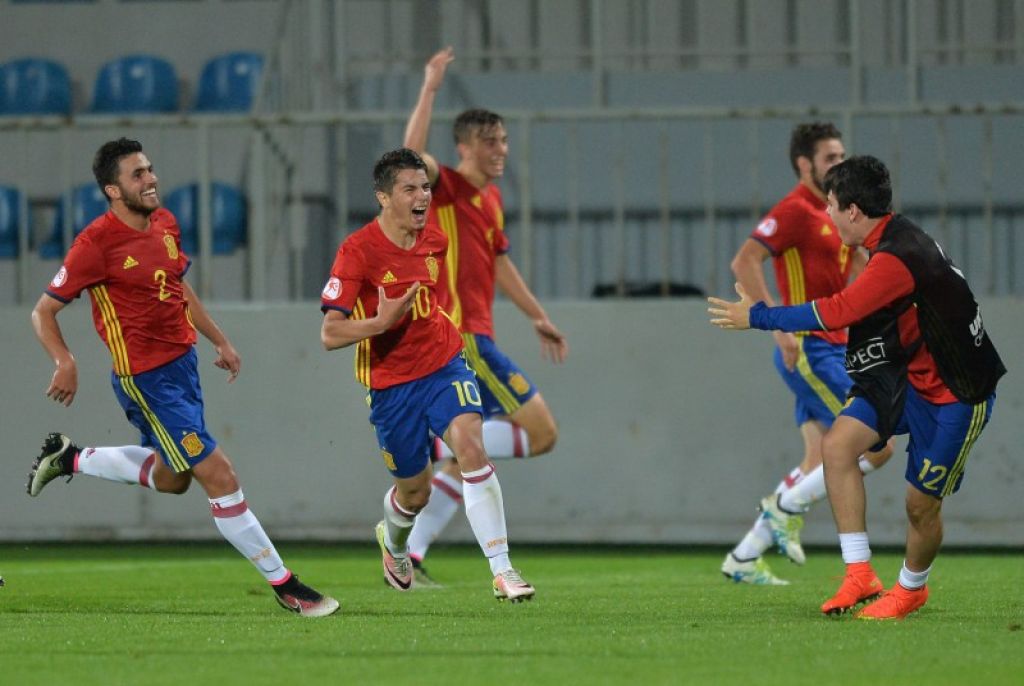 España comenzó el encuentro con las ideas muy claras, como ha hecho a lo largo del torneo: tocar, tocar y volver a tocar. Por otro lado Portugal intentó sorprender al equipo de Santi Denia a través de sus bandas imprimiendo mucha velocidad a su juego.