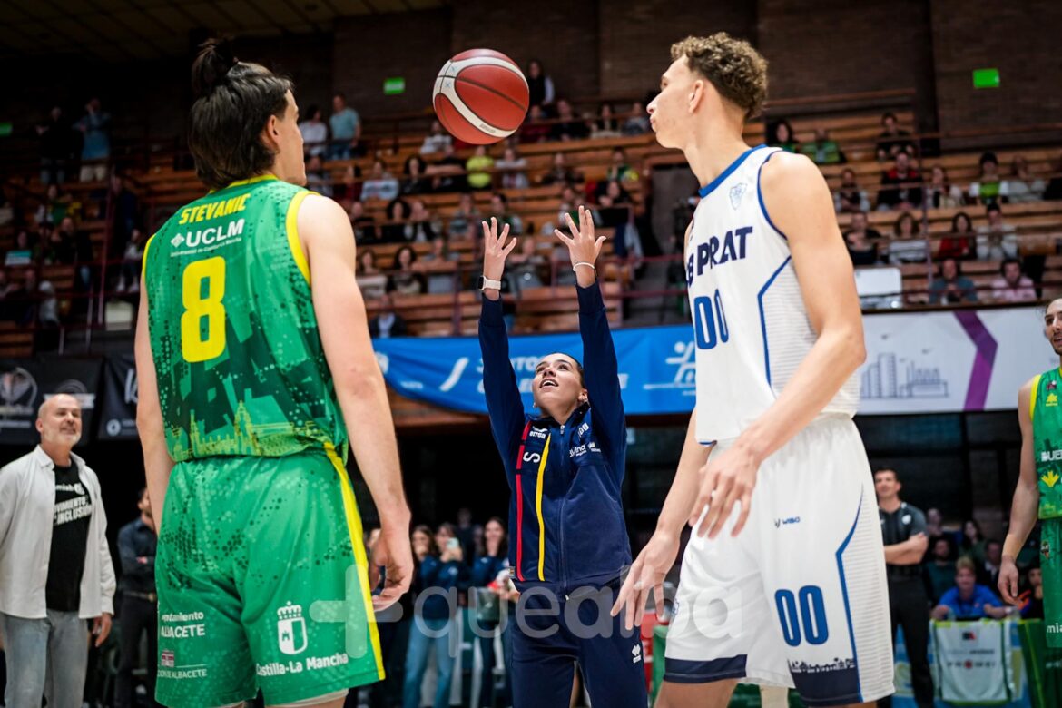 La gimnasta albaceteña Noemí Romero, que ha conseguido clasificarse para los Juegos Olímpicos de París 2024, donde competirá en la modalidad de gimnasia de Trampolín, ha realizado este sábado el saque de honor en el encuentro de play off del Bueno Arenas Albacete Basket.