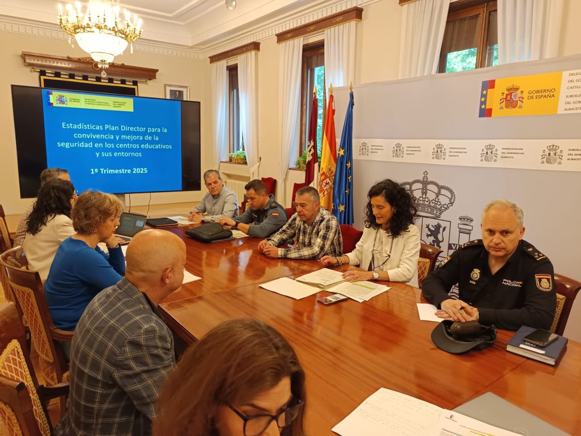 El subdelegado del Gobierno de España en Albacete, Miguel Juan Espinosa, ha presidido la reunión en la Subdelegación del Gobierno donde se han repasado los datos del Plan Director para la convivencia y mejora de la seguridad escolar en los centros educativos y sus entornos. Este plan tiene como principal objetivo la coordinación entre la comunidad educativa y las Fuerzas y Cuerpos de Seguridad del Estado para dotar a los escolares del conocimiento y las herramientas necesarias que les permitan detectar situaciones de riesgo que puedan afectar a su seguridad y por tanto les ayuden a prevenirlas.