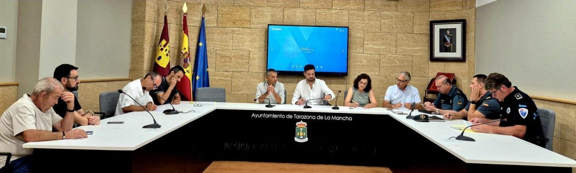 El subdelegado del Gobierno de España en Albacete, Miguel Juan Espinosa; y el alcalde de Tarazona de La Mancha, Miguel Zamora, han presidido esta mañana la Junta Local de Seguridad en la que se ha fijado el Plan de Seguridad de cara a las fiestas patronales del municipio que se celebrarán desde el 24 de agosto por su patrón, San Bartolomé.