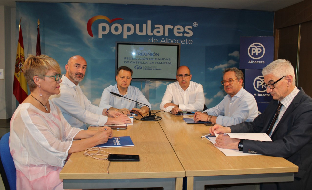 Manuel Serrano se ha pronunciado de este modo durante la reunión, presencial y telemática, que ha mantenido en la sede del Partido Popular de Albacete con el presidente de la Federación Castellano-Manchega de Sociedades de Música, Jorge Román, el vicepresidente general, Lino Palacios, el vicepresidente provincial en Albacete, Carlos Royo, y el vocal, Jesús Cabañero, para conocer con más detalle su proyecto de propuestas de actividades culturales para el Consistorio albaceteño.