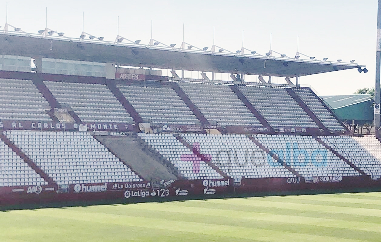 Dentro de las medidas de mejora que se están acometiendo en la infraestructura del Carlos Belmonte, se está practicando una obra en una de las gradas de la parte central de Marcador, que comprende la fila 1 a la 16 y los asientos entre el 1 y el 49.