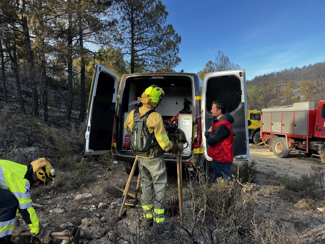 El consejero de Desarrollo Sostenible, José Luis Escudero, ha visitado esta mañana el Puesto de Mando Avanzado del incendio forestal de Ocentejo, que se produjo en la tarde de ayer en las inmediaciones del Parque Natural del Alto Tajo, donde ha podido comprobar de primera mano la evolución favorable del incendio y la efectividad de las tareas de extinción llevadas a cabo durante la noche.