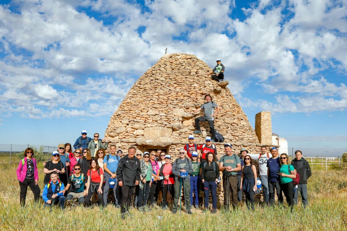 El domingo, otros cincuenta participantes distintos visitarían Minaya, para recorrer la prueba denominaba ruta “Ruta de los Cubillos”, con una dificultad técnica baja, un recorrido circular de unos 16 kilómetros de distancia y unas cuatro horas de duración. Aquí les recibiría Juan José Grande González, alcalde del municipio, quien acompañaría durante la ruta. Foto a las puertas del Ayuntamiento para comenzar la marcha de la ruta por la Llanura Manchega. Tras abandonar Minaya cogerían el llamado “Camino de Villarrobledo”. Primero visitarían el cubillo “Emilio”, con pocos años de antigüedad y de grandes dimensiones, situado muy cerca del municipio, tiene unas losas a su alrededor que sirve para subir hasta arriba del todo, lo que les sirvió de gran ayuda para su construcción.