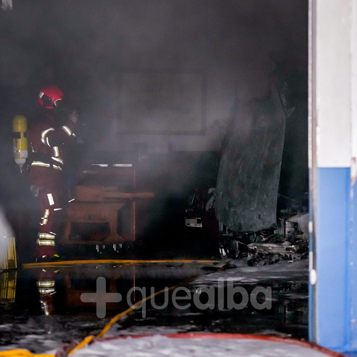Fuerte despliegue de los Servicios de Emergencia esta noche en un taller del número 8 de la carretera de Jaén, en Albacete capital. Pasadas las 20 horas, se incendiaba un turismo en el interior del taller, lo que generaba un fuerte despliegue. El vehículo quedaba totalmente calcinado y se provocaban daños también en otro aledaño.