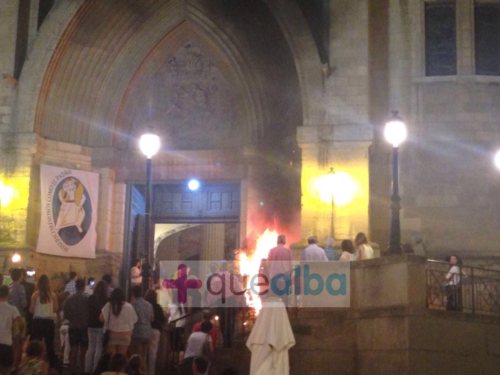 Cuando el desfile de antorchas ya había comenzado, el lugar donde estaba la imagen del patrón San Juan y desde donde se prende a las antorchas, ha sufrido un pequeño susto con el fuego. La imagen de San Juan ha tenido que ser devuelta al templo.