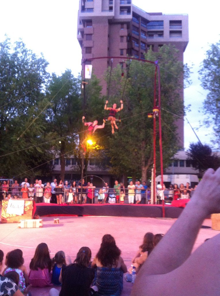 Uno de los trapecistas que este jueves actuaban en el Parque Lineal de Albacete se ha caído durante la actuación, desde una altura considerable. Del momento en cuestión nos remiten esta foto. Tras el suceso momentos de desesperación y el trapecista ha tenido que ser trasladado al Hospital. Por cierto, que a la Ambulancia han tenido que avisarla, no estaba previsto en el espectáculo.