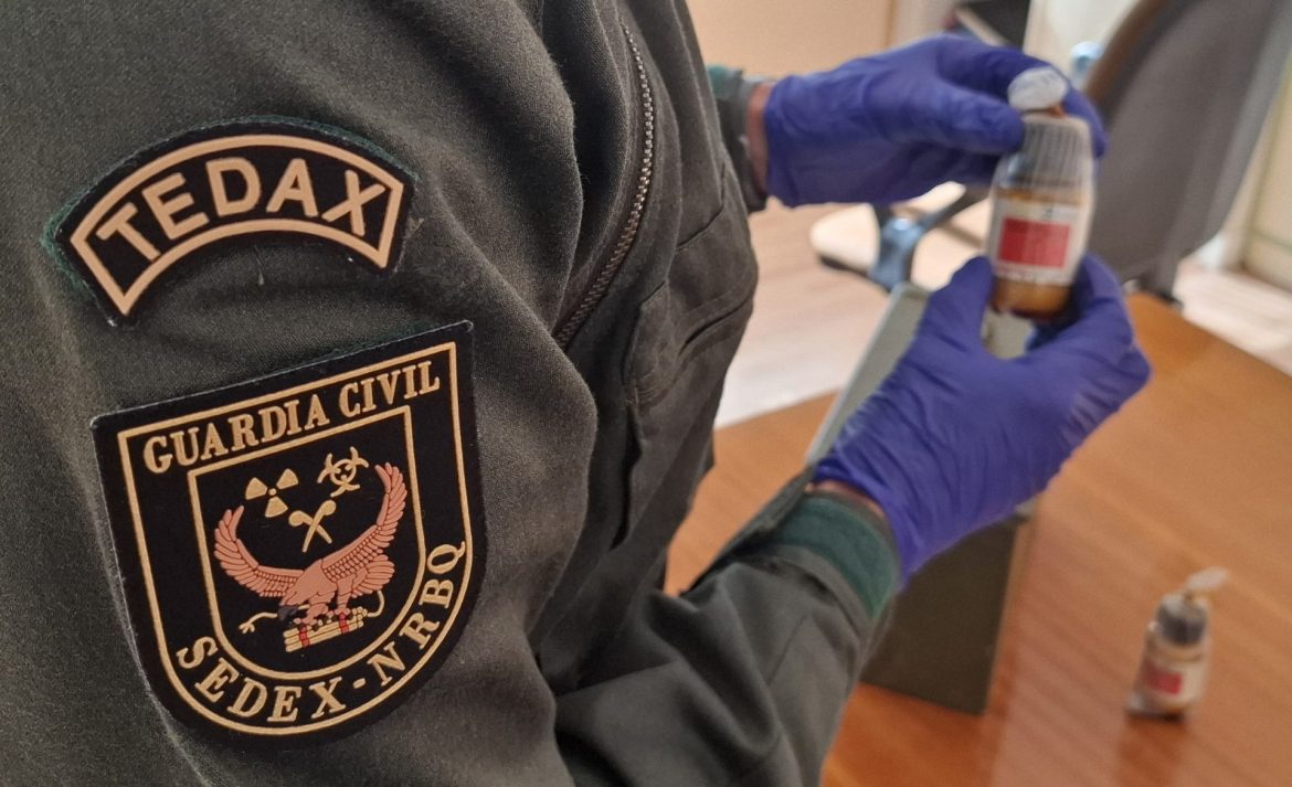 Hasta esos centros educativos se trasladaron los TEDAX de la Guardia Civil de Alicante, capacitados para manejar y destruir con seguridad cualquier sustancia o material explosivo, procediendo a la retirada de 10 envases que contenían 325 gramos de esta sustancia altamente explosiva.