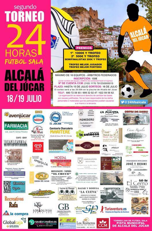 La localidad de Alcalá del Júcar acogerá el fin de semana del 18 y 19 de julio su segundo torneo de Fútbol Sala 24 horas, con interesantes premios. Una cita que no te puedes perder si tienes un equipo de fútbol sala y estás dispuesto a pasar un buen fin de semana en un entorno muy atractivo. ¿Te animas?