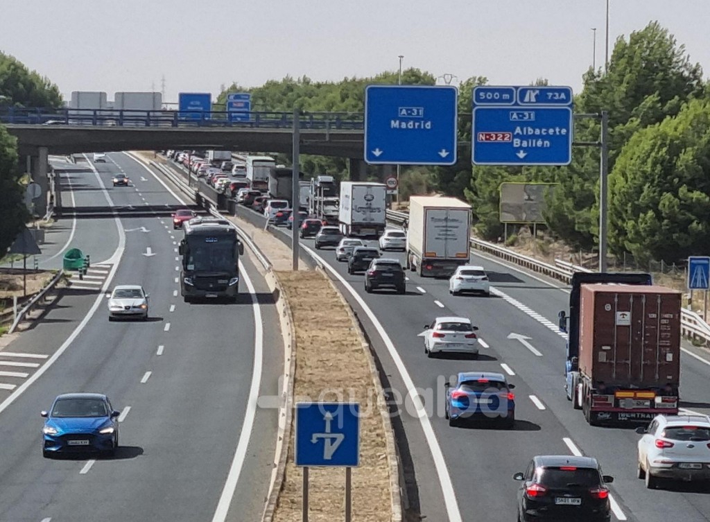Este lunes, 25 de julio, es festivo en Madrid, por el día de Santiago y ello provoca, esta tarde, un tráfico intenso en la A-31, por Albacete.