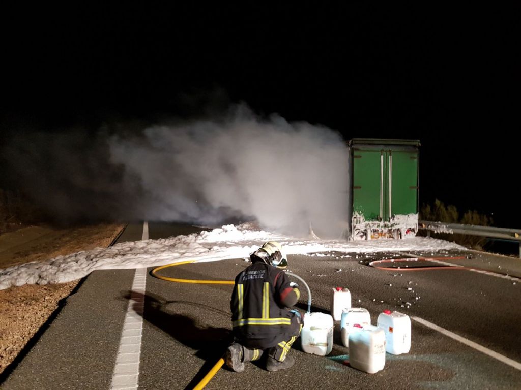 Los Bomberos de Albacete han tenido que actuar este martes en el incendio de un camión de ferralla, en la A-30, en dirección a Murcia, a su paso por Albacete. Según han informado los Bomberos, con esta imagen del suceso, el incendio pudo ser causado por los frenos del camión.