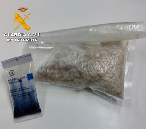El estupefaciente intervenido por la Guardia Civil, considerado como una droga estimulante muy adictiva, hubiese supuesto 1.860 dosis en el mercado ilícito.
