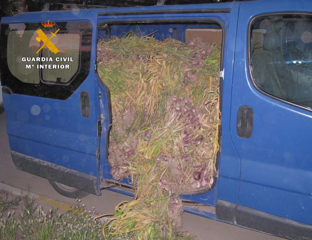 Desde el COS se estableció un dispositivo para localizar el vehículo avistado, lo que llevó a movilizar a varias patrullas de la Benemérita próximas al lugar de los hechos, que consiguieron interceptarlo a la entrada de la pedanía albaceteña de Santa Ana. En el interior de la furgoneta se apilaban varias gavillas de ajos que fueron intervenidos al no poder acreditar ninguno de los tres ocupantes su procedencia legal.