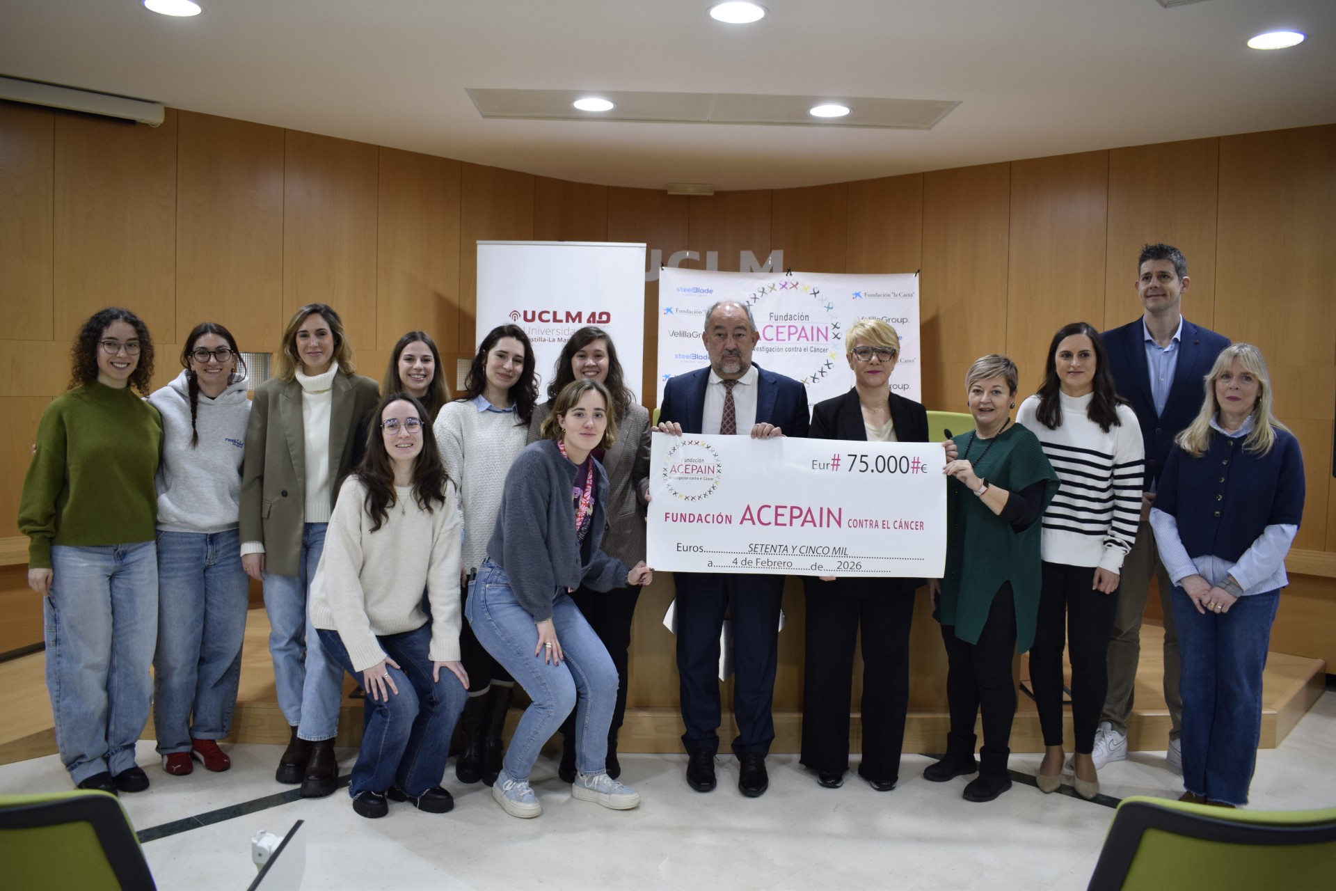 El rector de la Universidad de Castilla-La Mancha (UCLM), Julián Garde, y la presidenta de la Fundación ACEPAIN Contra el Cáncer, Joaquina Alarcón, han visibilizado el convenio de colaboración empresarial firmado entre ambas partes para continuar realizando trabajos de investigación en la lucha contra el cáncer. Mediante este acuerdo la Fundación ha entregado a la UCLM una aportación de 75 000 euros.